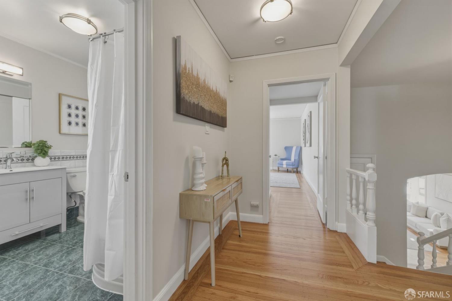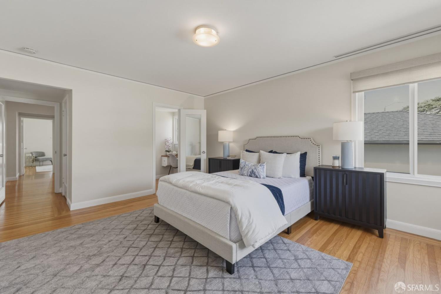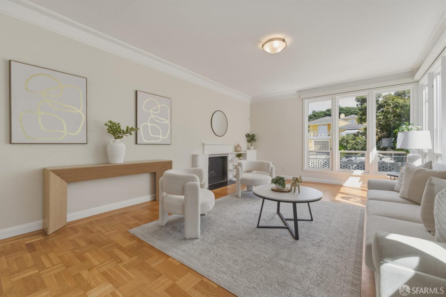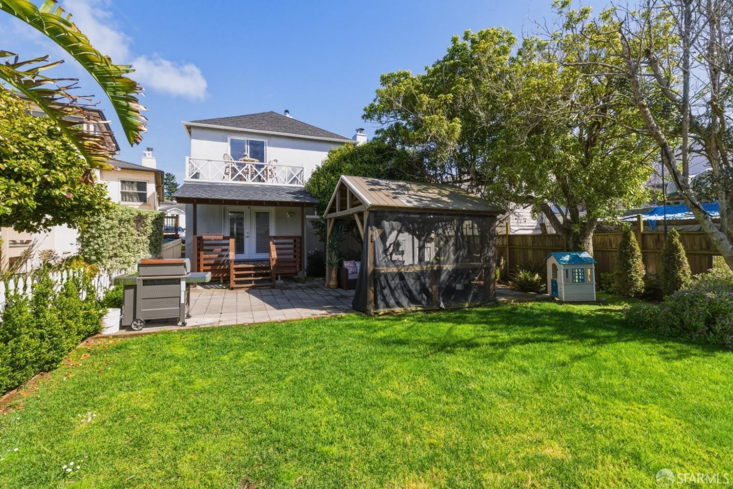 Welcome to this inviting Lakeside District home, ideally located in a highly walkable neighborhood. This residence offers three bedrooms, two full bathrooms, and generous indoor-outdoor living. Upon entry, you’re welcomed by a foyer with high ceilings and a beautiful staircase. To the right, a spacious sunken living room features built-ins, a fireplace, and large windows that bring in abundant natural light. Across the foyer is the dining room with double doors, adjacent to the kitchen and a charming breakfast nook. Upstairs, you’ll find two bedrooms and one full bathroom. The primary bedroom includes a private dressing area with a built-in vanity. The second bedroom opens to a cozy patioperfect for fresh air and enjoying city outlooks. The lower level offers a third bedroom, a full bathroom, and a large closet, with direct access to the expansive backyard. The outdoor space includes a gazebo ideal for gatherings and a grassy area perfect for entertaining or play. Conveniently located near the shops and dining along Ocean Avenue, with West Portal just a short stroll away, this elegant home offers both comfort and accessibility in wonderful Lakeside District.