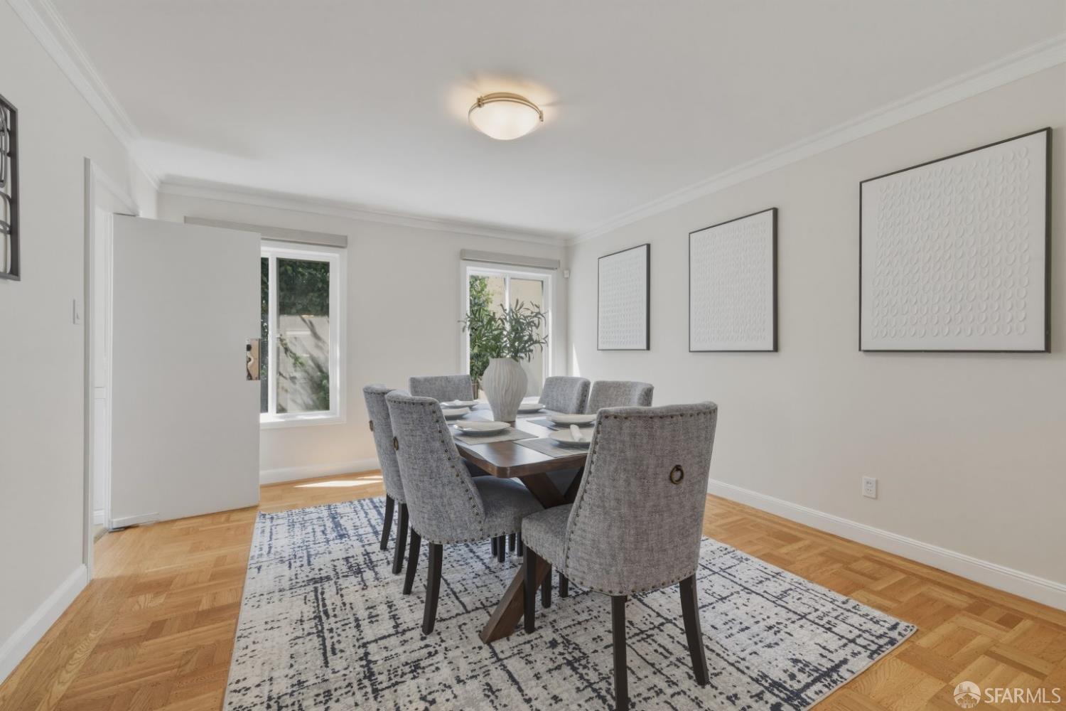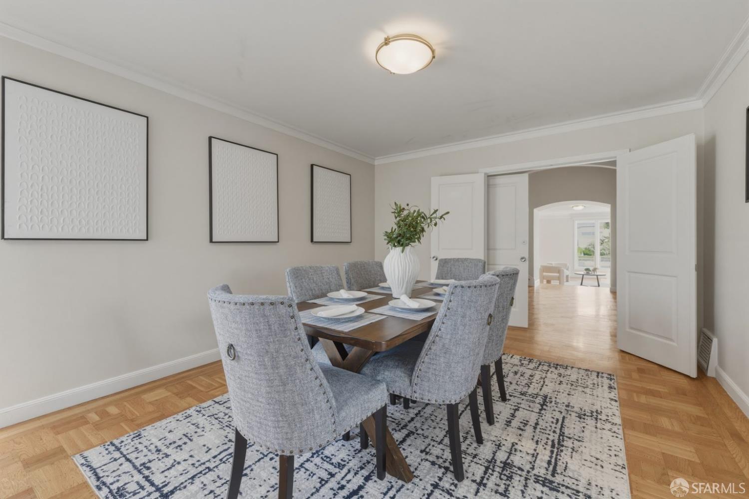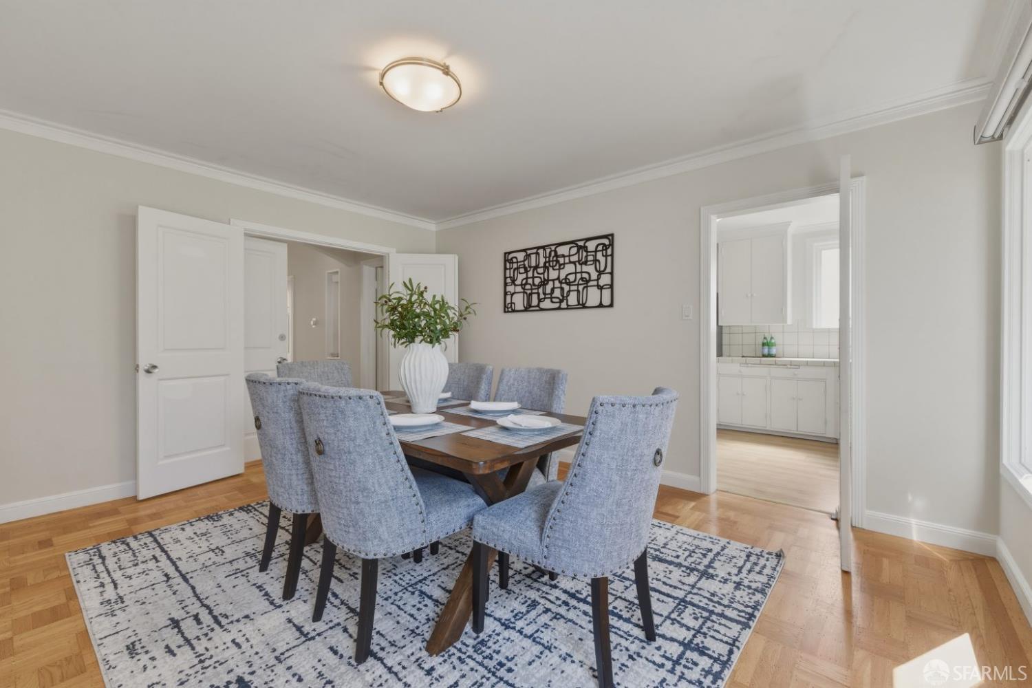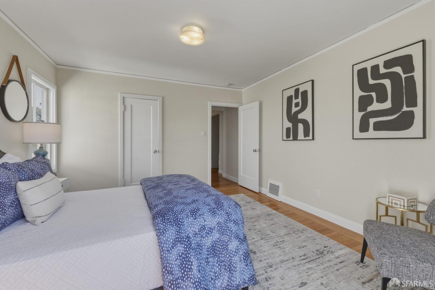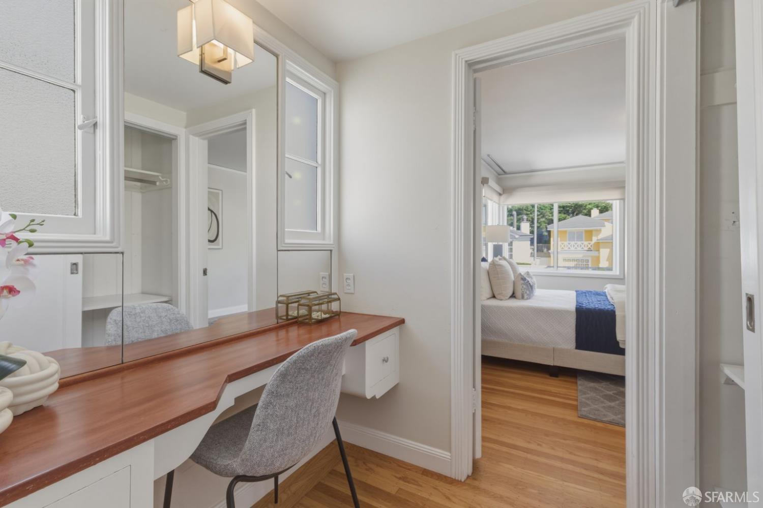 Welcome to this inviting Lakeside District home, ideally located in a highly walkable neighborhood. This residence offers three bedrooms, two full bathrooms, and generous indoor-outdoor living. Upon entry, you’re welcomed by a foyer with high ceilings and a beautiful staircase. To the right, a spacious sunken living room features built-ins, a fireplace, and large windows that bring in abundant natural light. Across the foyer is the dining room with double doors, adjacent to the kitchen and a charming breakfast nook. Upstairs, you’ll find two bedrooms and one full bathroom. The primary bedroom includes a private dressing area with a built-in vanity. The second bedroom opens to a cozy patioperfect for fresh air and enjoying city outlooks. The lower level offers a third bedroom, a full bathroom, and a large closet, with direct access to the expansive backyard. The outdoor space includes a gazebo ideal for gatherings and a grassy area perfect for entertaining or play. Conveniently located near the shops and dining along Ocean Avenue, with West Portal just a short stroll away, this elegant home offers both comfort and accessibility in wonderful Lakeside District.